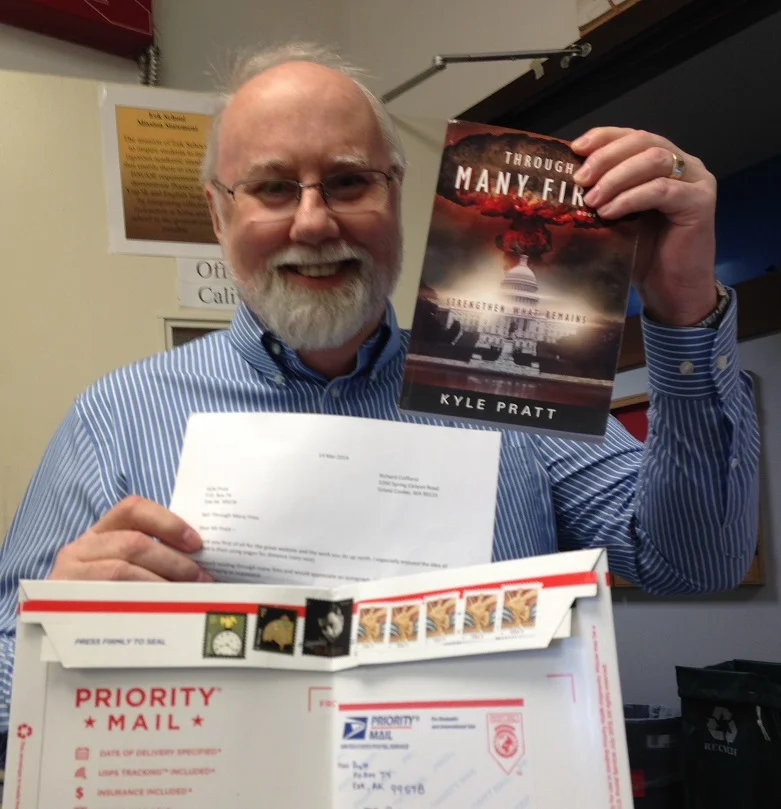 Puzzled, I reached in and tore it the rest of the way open. Out came a copy of my book Through Many Fires. Loni stood there puzzled as I read the letter and a smile grew on my face. I’m still a relatively unknown author and don’t get that much fan mail. “It’s from one of my readers.” I said. “I put instructions on my website for anyone who wants me to autograph their book.” Holding up the paperback I added, “He’s the first.”