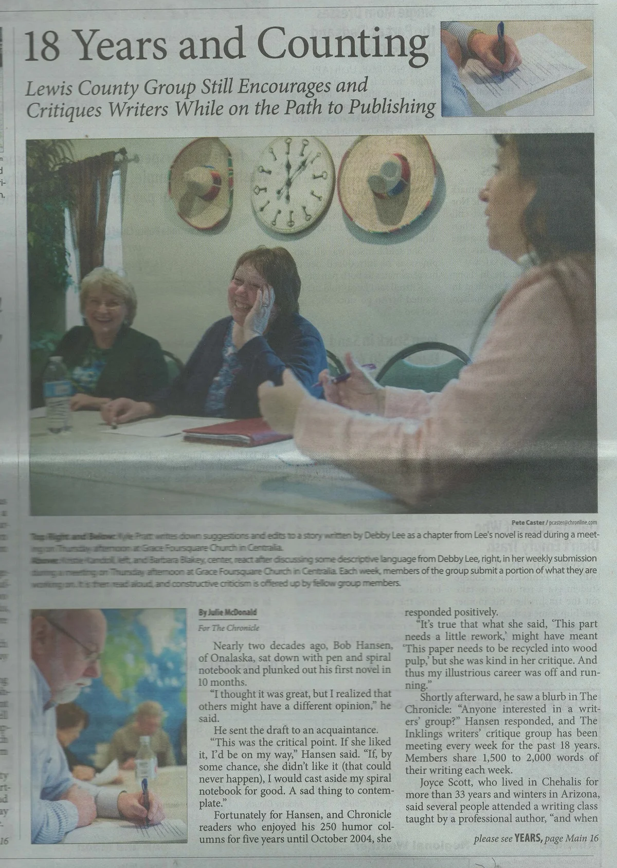 Recently our local paper, The Chronicle, ran a front-page story about a critique group that has been in existence for nearly two decades and that I’ve attended for about twelve years. As my friend Julie McDonald Zander questioned me about the group for the upcoming story, I dug through old pictures and information to find answers.