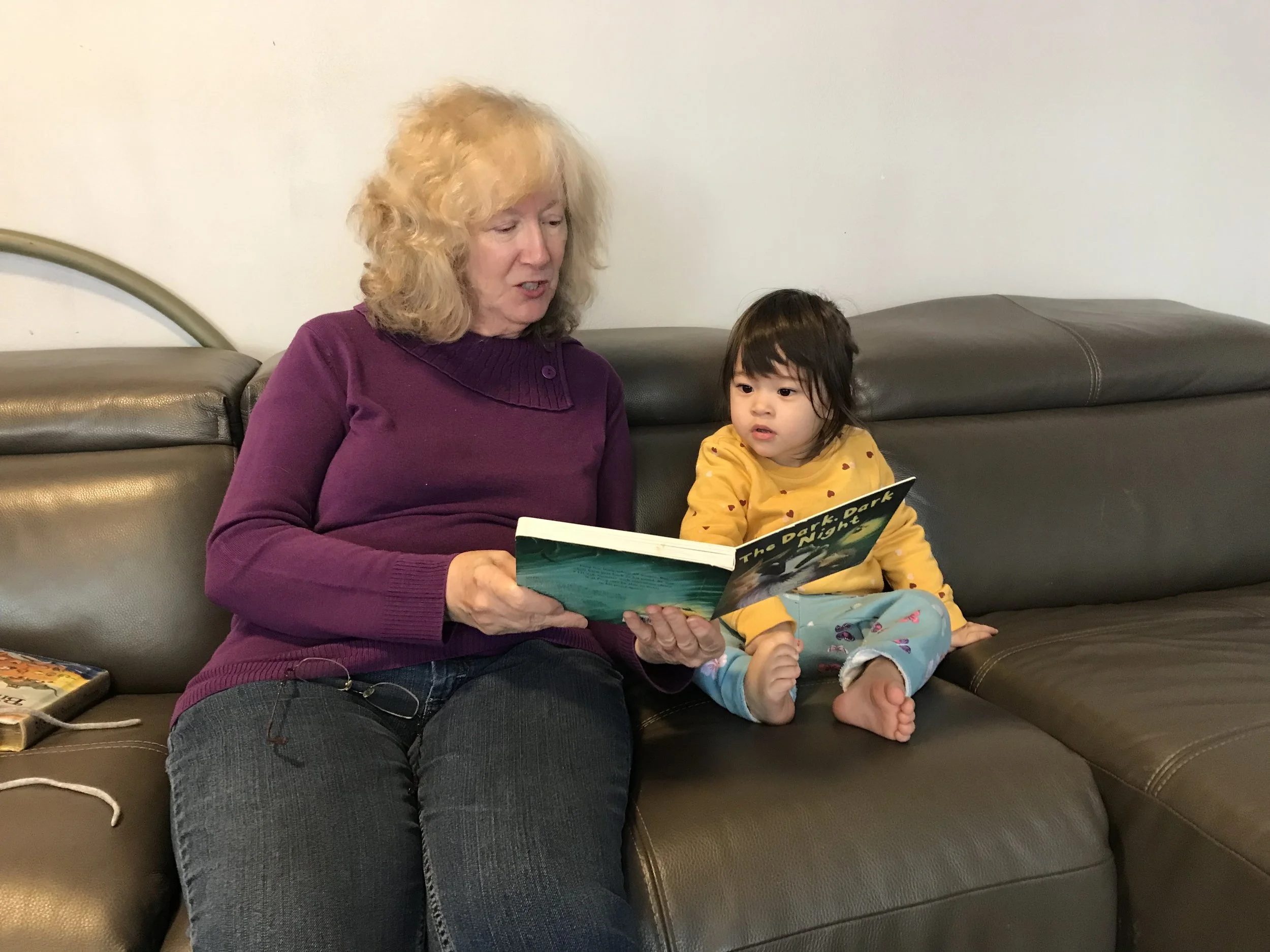 Grandma Lorraine reads to her grandchild Emily, 2022