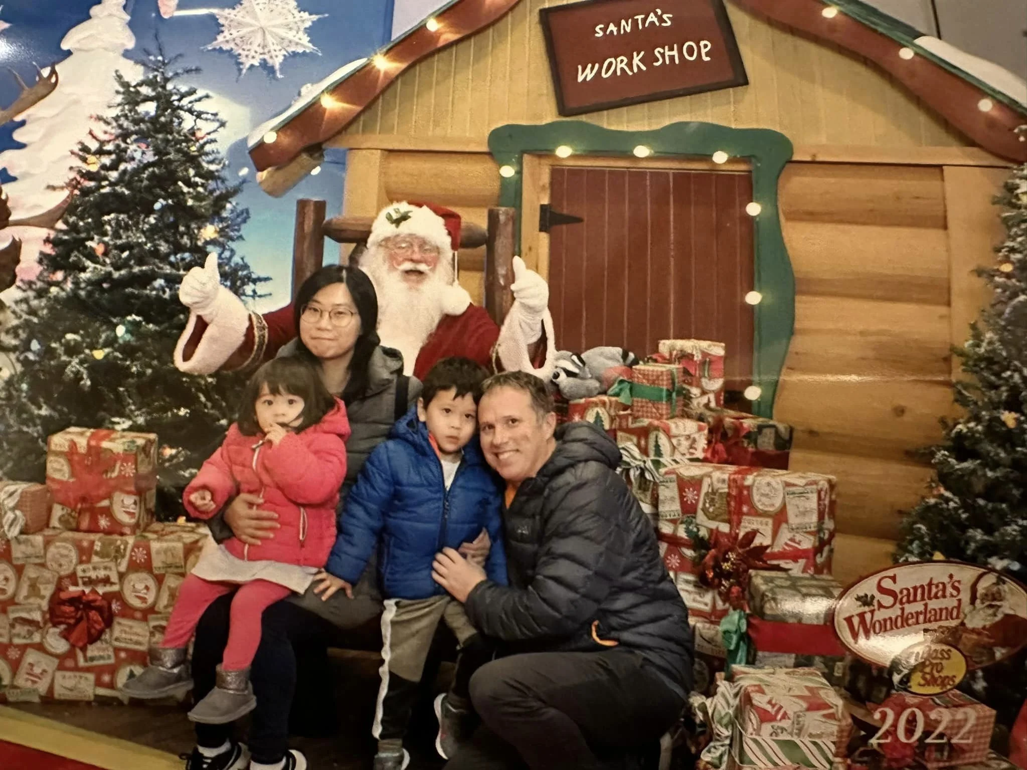 Robert, Carol, Emile and Oliver with Santa in December 2022