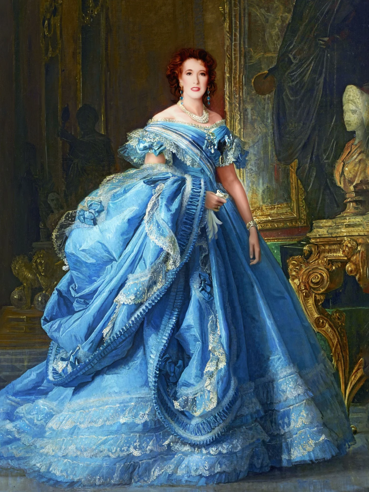 We had a combination painting and photoshop portrait done of Lorraine as Lady Camden using a picture from when she was younger.
