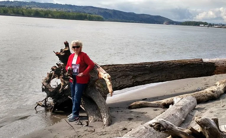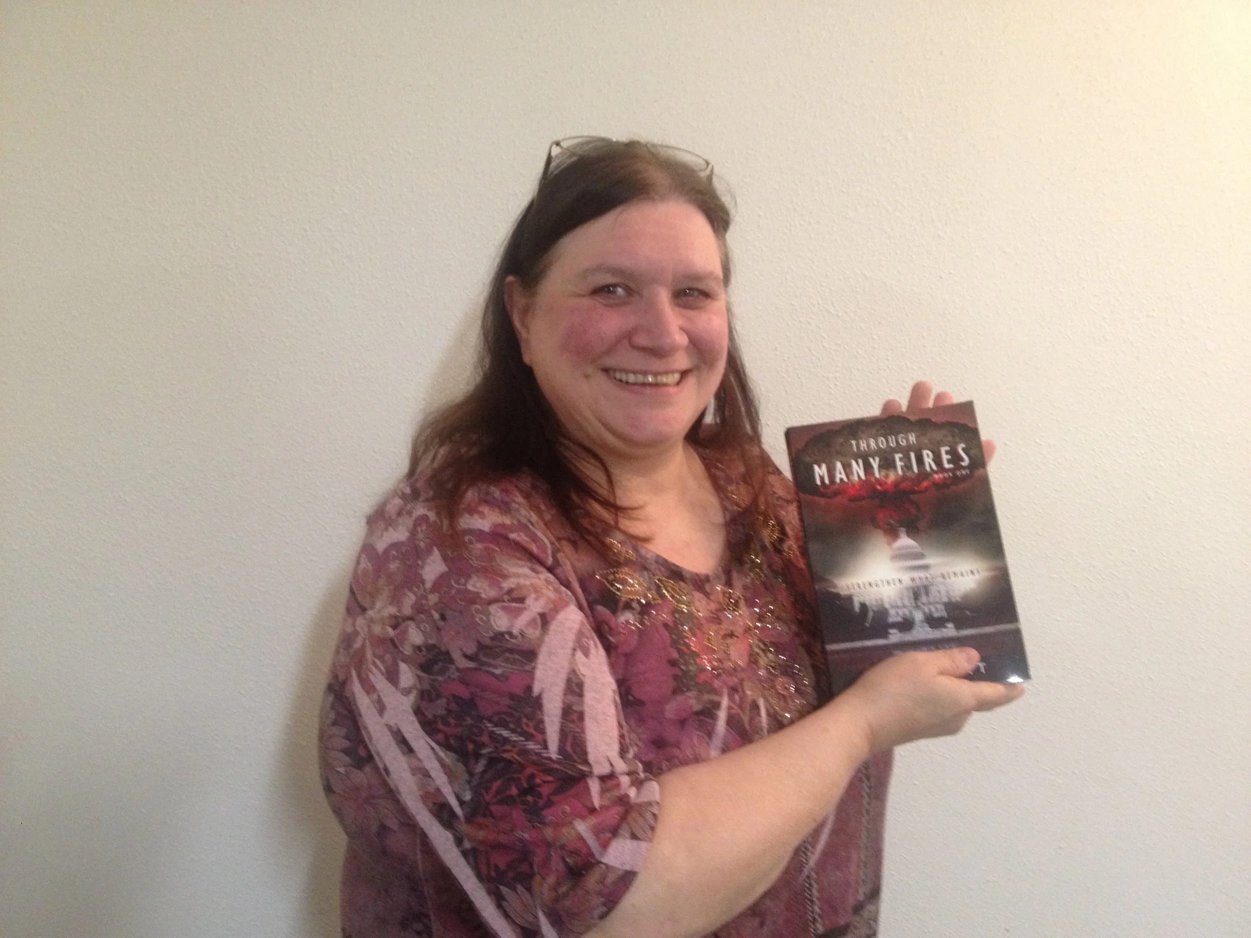 Debbie from Centralia, Washington State, with a copy of Through Many Fires.