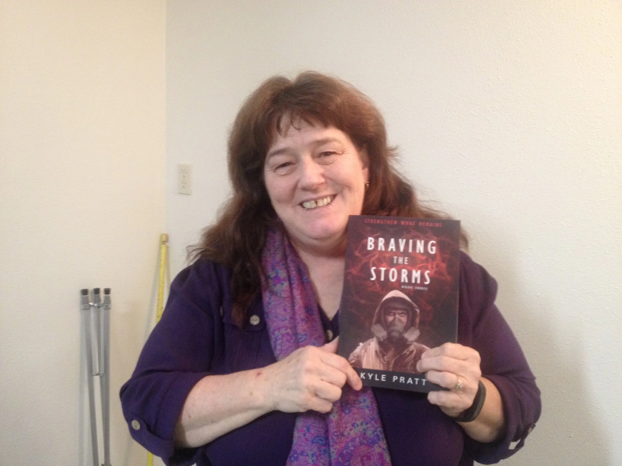 Susanne from Centralia, Washington State holds a copy of The Storm Rises.