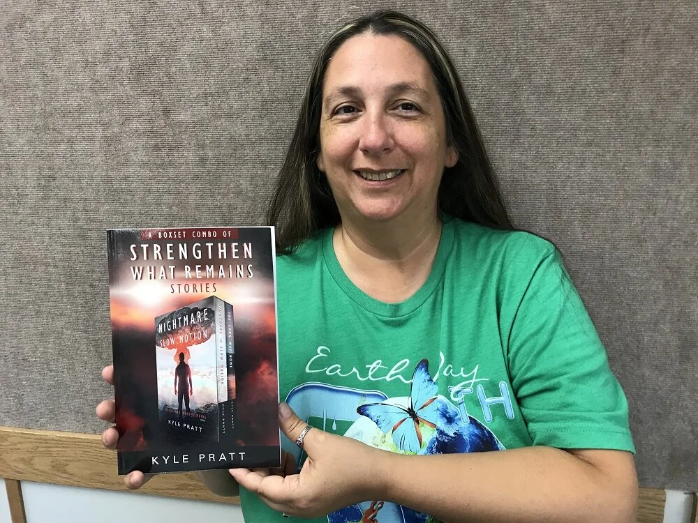 Kristie from Longview, Washington state, with a copy of Strengthen What Remains stories.